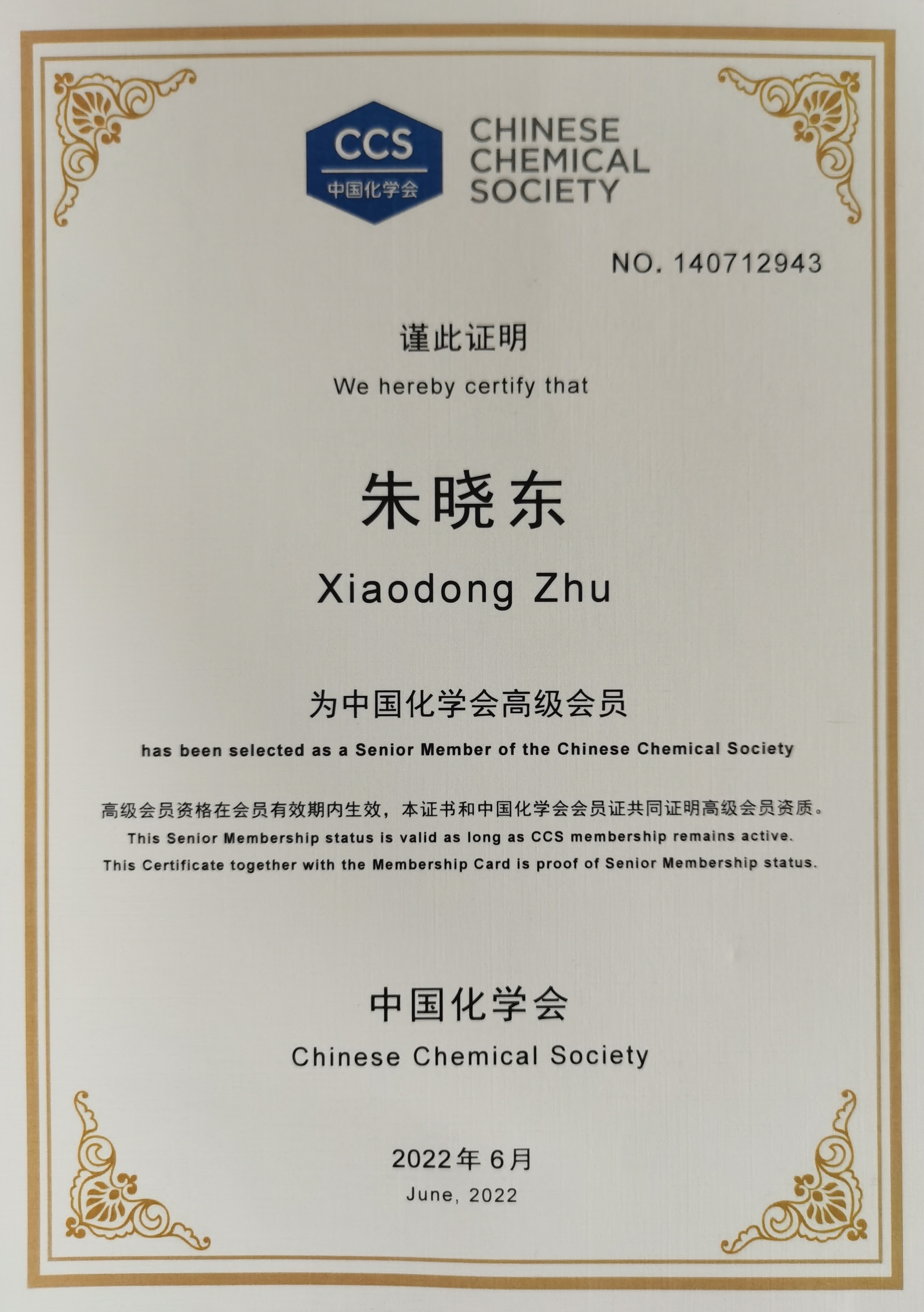 2022.6 - 2022.6   中国化学会高级会员